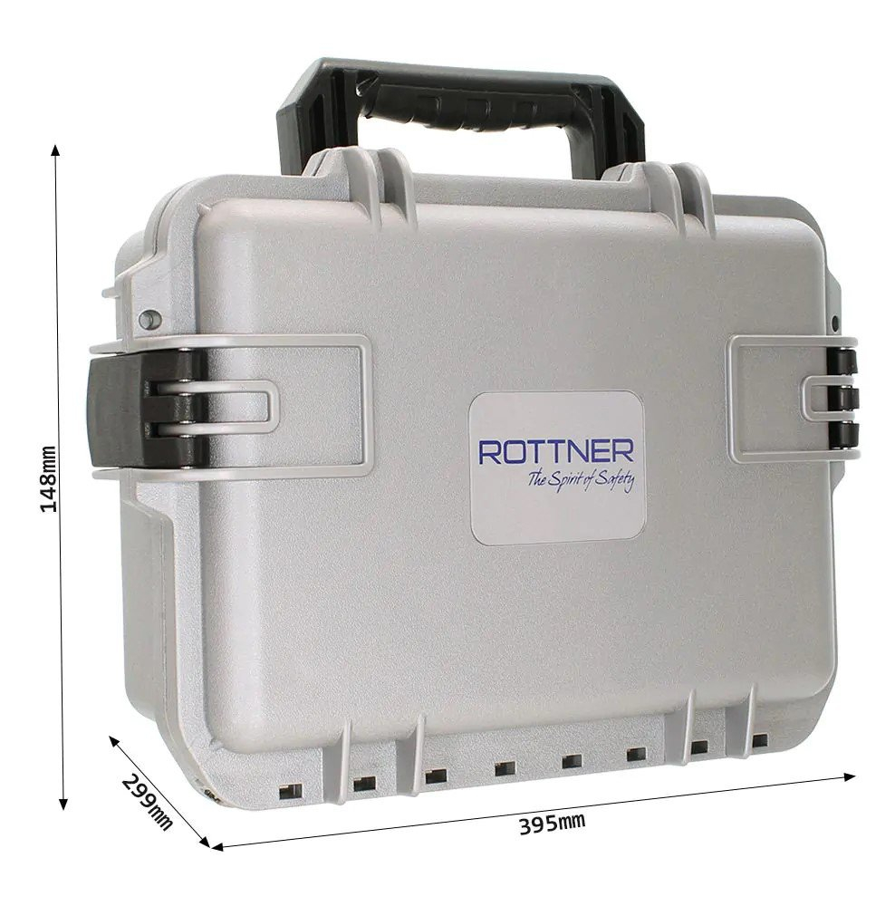Plastový kufřík Rottner Gun Case Mobile disponuje místem pro uložení 2 krátkých zbraní, cenností, šperků nebo munice. Uzamykání je řešeno prostřednictvím plastových klipů, a v případě potřeby je možné kufřík uzamknout i 2 visacími zámky (nejsou součástí balení). Uvnitř kufříku se nachází perforovaná plastová hmota pro bezpečnější přenos uložených věcí. Vnitřní výztuhy lze upravovat dle přání. Jednoduše tak přizpůsobíte vnitřek kufříku převážené zbrani, šperku nebo jiné důležité věci. Pro lepší uchopení má kufřík na horní straně plastovou rukojeť.
