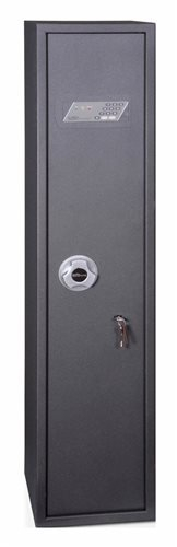 Jednoplášťová skříň určená na uložení pěti dlouhých zbraní. Je vyrobená z kvalitního ocelového plechu tloušťky 2,5 mm. Deska dveří je z plechu o tloušťce 3 mm. Na čtyřbodové uzamykání je elektronický zámek se zvýšenou bezpečností třídy „A“ podle EN 1300.