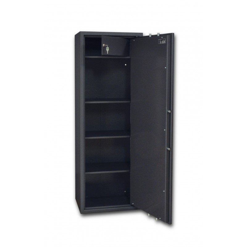 dodávaná standardně s 3 ks polic výškově stavitelných po cca 2,5 cm a vnitřní uzamykatelnou schránkou. Vhodná je všude tam, kde ke spisům musí být kontrolovaný přístup. Není vždy třeba trezor, pokud je např. objekt střežen jiným odpovídajícím způsobem, neboť i tato skříň má odolnost 15 RU dle 1143-1 a trezorový zámek typ "A" se zvýšenou bezpečností dle EN 1300.(podmínka např. pro uložení zbraní a střeliva). Je tedy i vhodná pro uložení krátkých zbraní a střeliva, výška prostoru pod schránkou 130 cm.