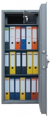 Skříňový trezor TSS 125 M je standardně osazen vnitřní uzamykatelnou schránkou a dvěma vyjímatelnými policemi, které jsou výškově nastavitelné. Ovládá se mechanickým klíčovým zámkem MAUER.